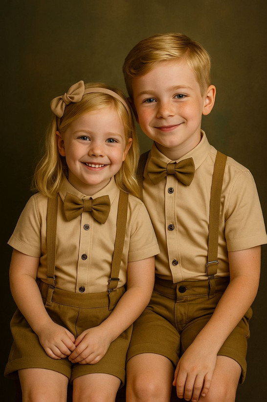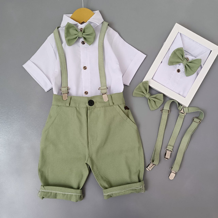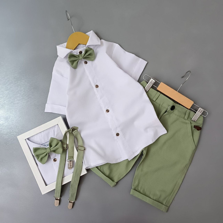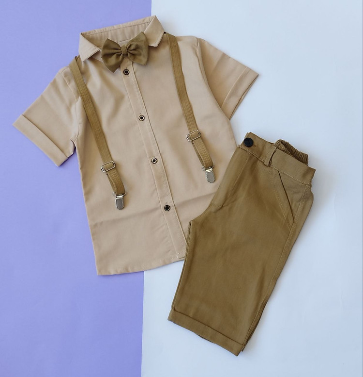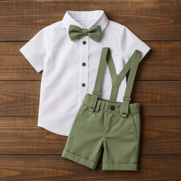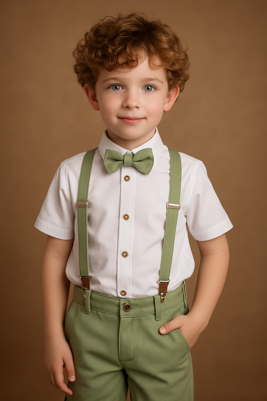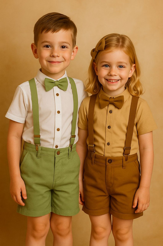🎀 پاپیون و 🩳 ساسبند نیز جذابیت استایل کودک را کامل میکنند و این ست را به یک انتخاب کامل برای استایلهای مجلسی و اسپرت تبدیل کردهاند.