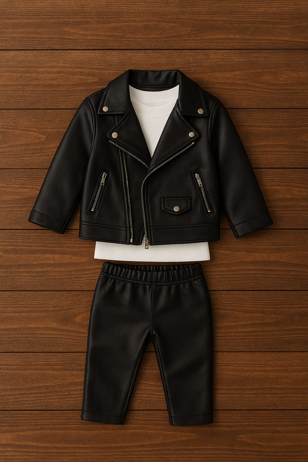 سه تیکه کت، شلوار و بلوز چرم اسپرت