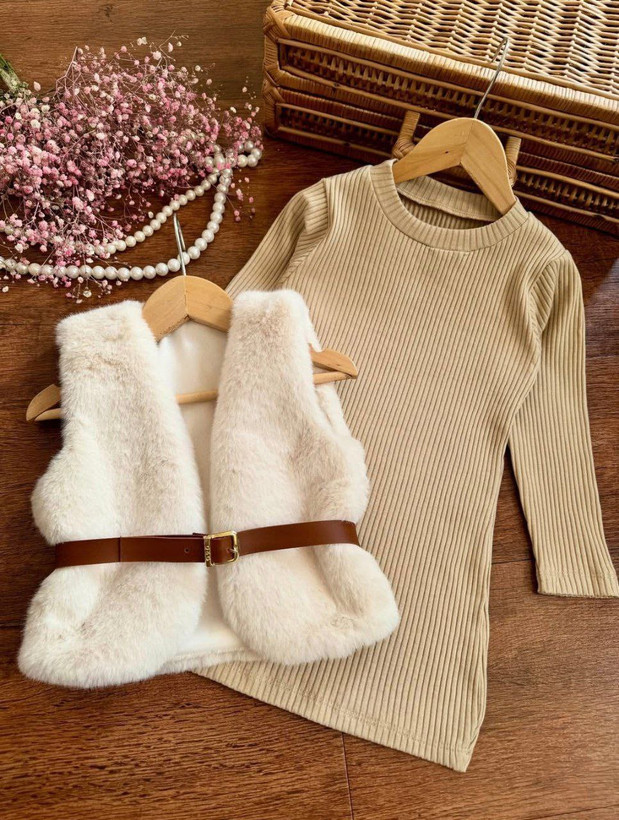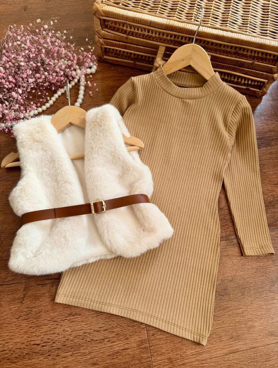ست تونیک و جلیقه بچگانه – استایل شیک و گرم